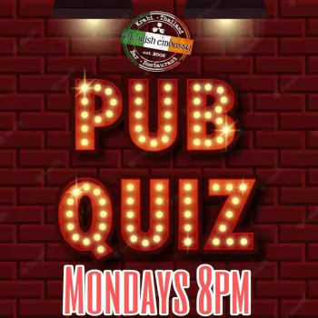 Join us for our weekly Monday Quiz night at the Irish embassy.